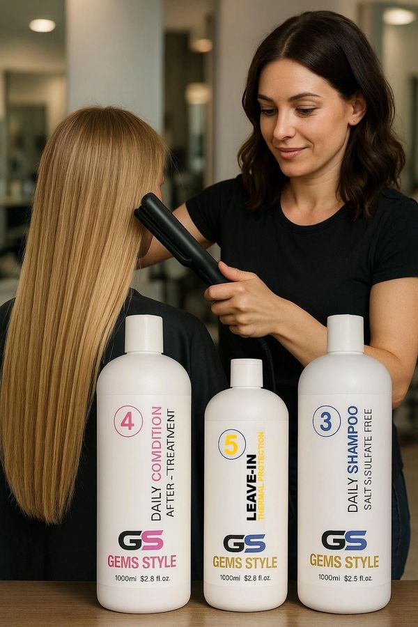 4- Después de 3 días, lave el cabello con GS Gems Style Daily Shampoo y GS Gems Style Daily Conditioner para garantizar los máximos resultados.Puedes lavar el cabello el mismo dia si quiere.